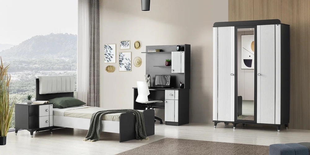 Takım içeriği; 3 Kapılı Dolap + Çalışma Masası +  Karyoladan  oluşmaktadır.