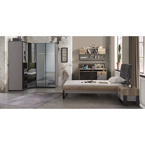 Takım içeriği; 2 Kapılı Dolap + Tek kapılı Dolap+ Tek kapılı Köşe dolap+ Çalışma Masası +  Karyoladan  oluşmaktadır.