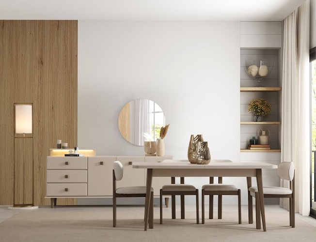 • Takım içeriği; Yemek masası, Konsol, 1 adet konsol aynası, 6 adet sandalyeden oluşmaktadır.