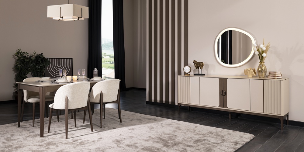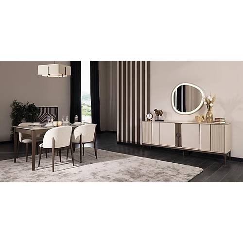 • Takım içeriği; Yemek masası, Konsol, 1 adet konsol aynası, 6 adet sandalyeden oluşmaktadır.