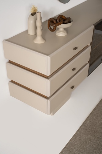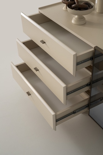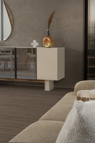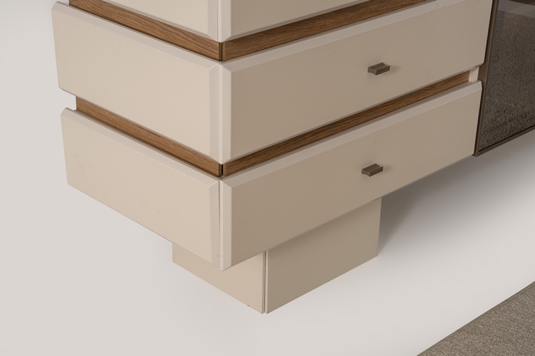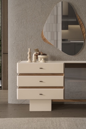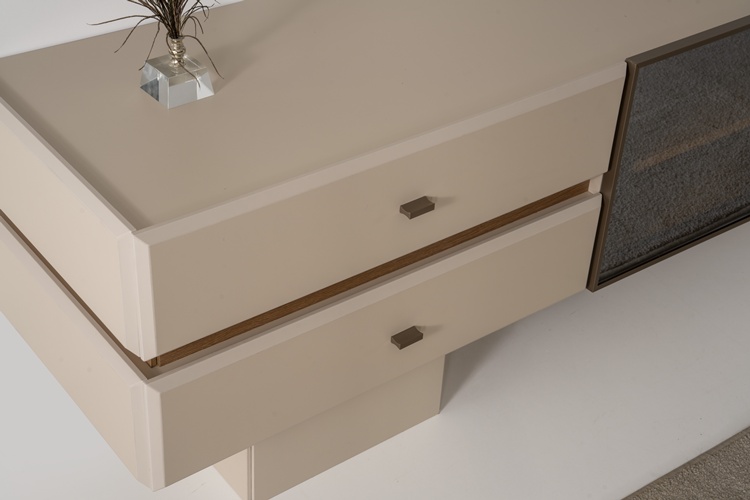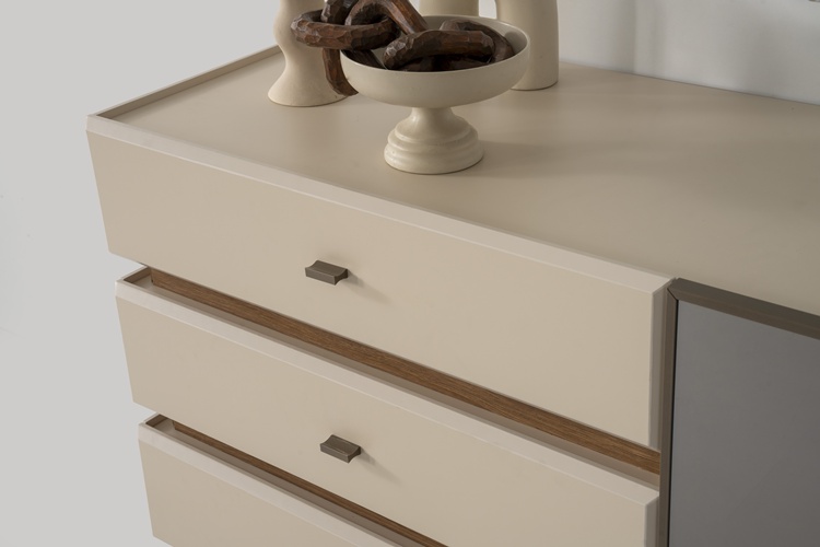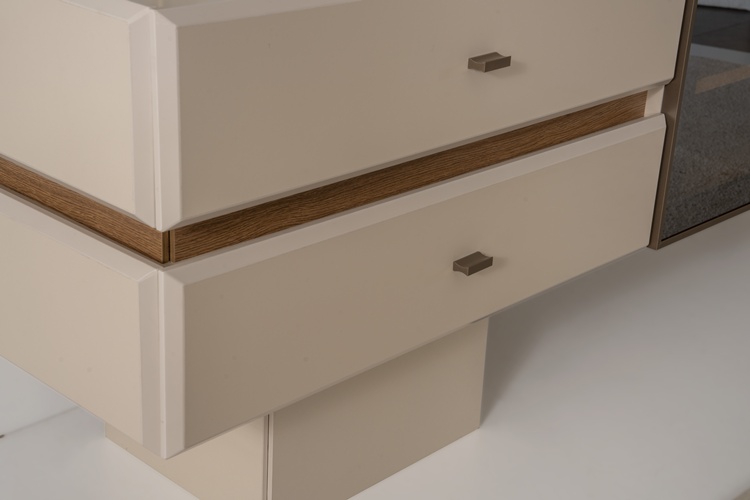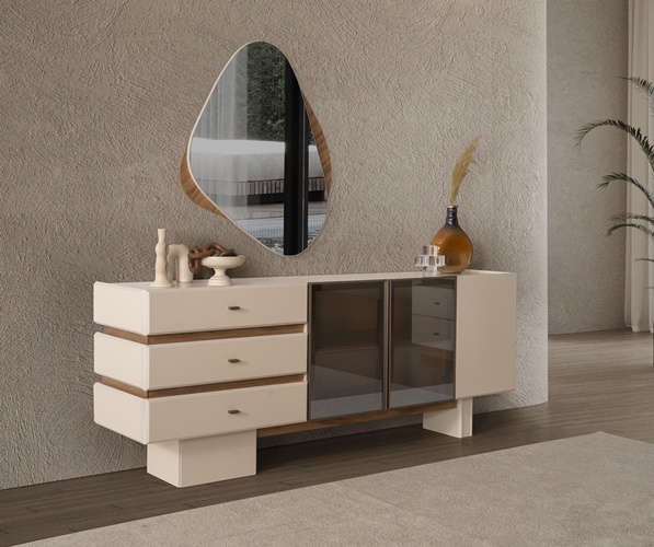 • Konsol ayakları ahşap, kulplar metal malzemeden üretilmiştir.