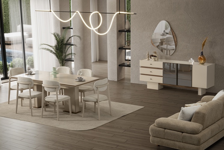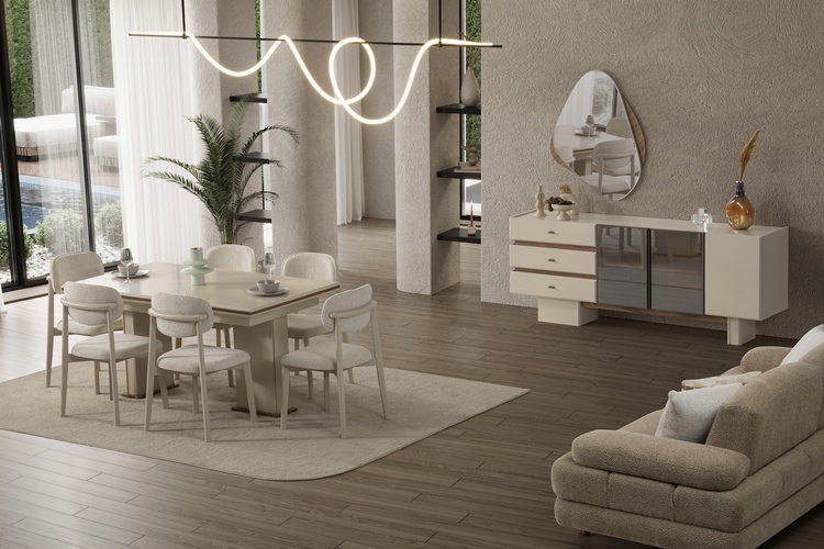 • Takım içeriği; Yemek masası, Konsol, 2 adet konsol aynası, 6 adet sandalyeden oluşmaktadır.