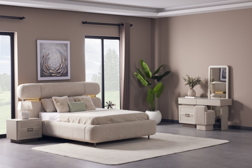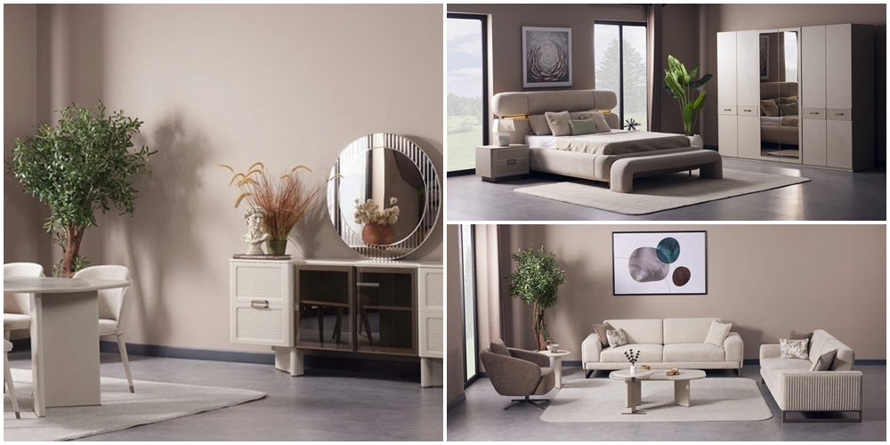 * Yatak odası, yemek odası ve salon takımı birbiri ile tam uyum sağlamaktadır.
