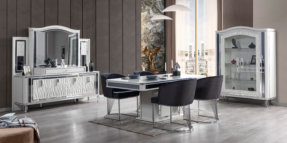 • Takım içeriği; Yemek masası, Konsol, 1 adet konsol aynası, 6 adet sandalyeden oluşmaktadır.