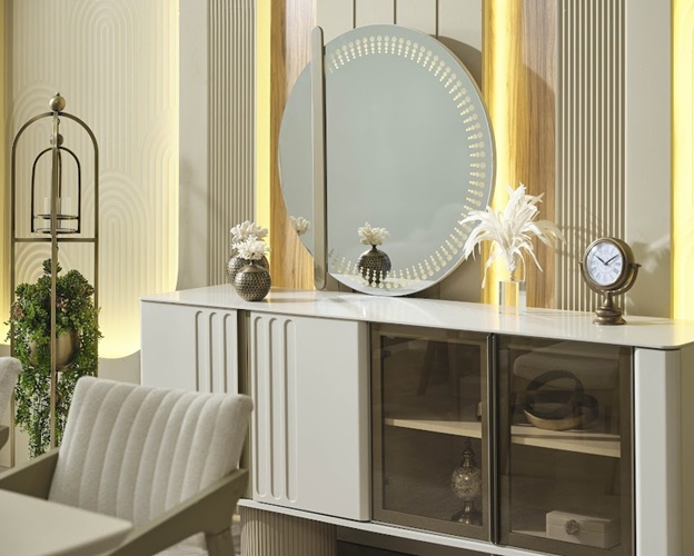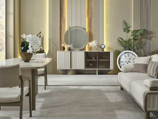 • Takım içeriği; Yemek masası, Konsol, 1 adet konsol aynası, 6 adet sandalyeden oluşmaktadır.