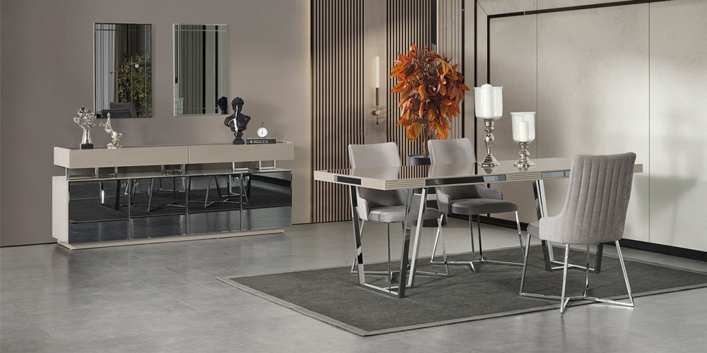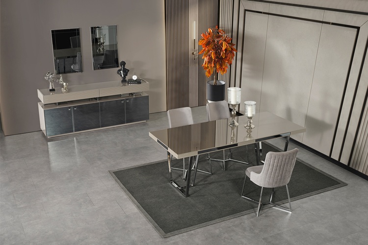 • Takım içeriği; Yemek masası, Konsol, 1 adet konsol aynası, 6 adet sandalyeden oluşmaktadır.