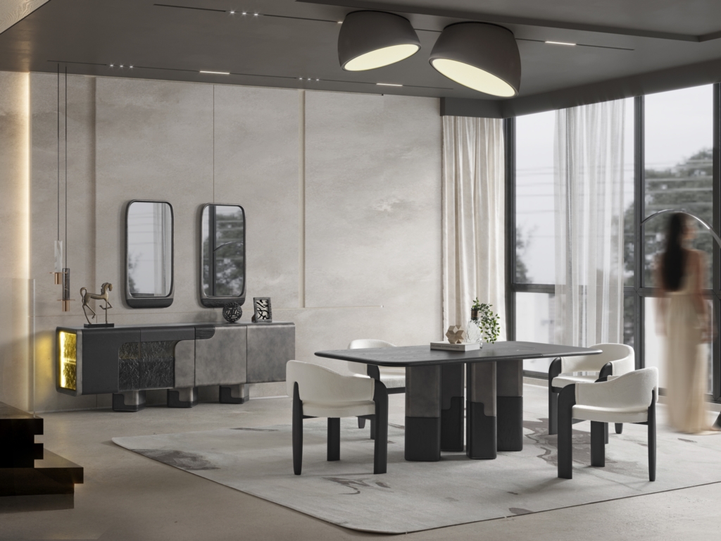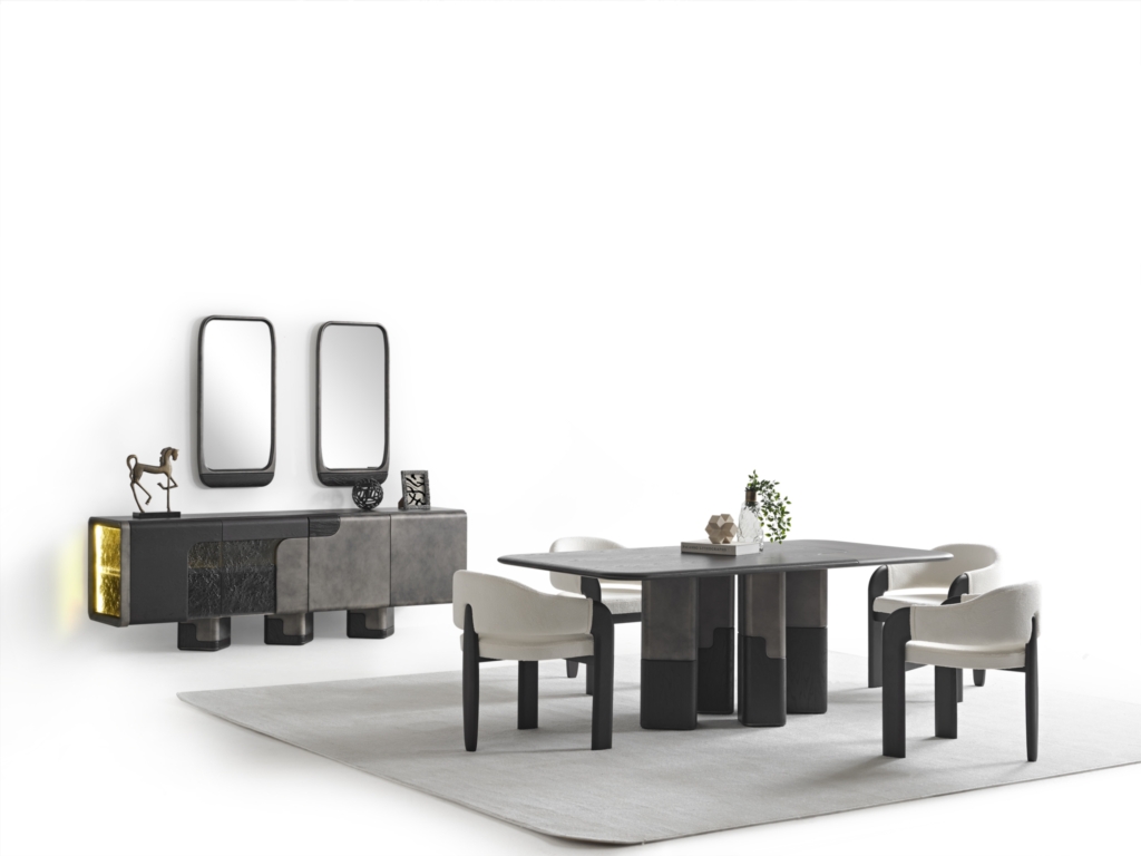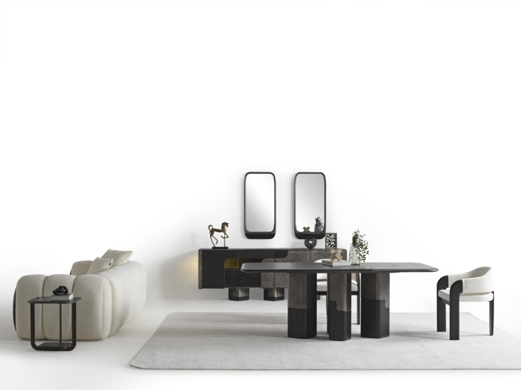 • Takım içeriği; Yemek masası, Konsol, 1 adet konsol aynası, 6 adet sandalyeden oluşmaktadır.